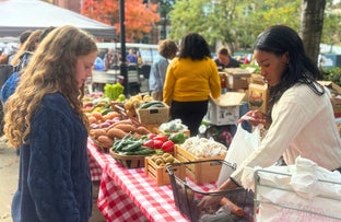 At each market, students can select up to 10 free produce items, making it easier to bring fresh, nutritious options home. The selection features a variety of vegetables like potatoes, onions, and cherry tomatoes, along with fruits such as oranges and bananas—helping fuel our campus community with wholesome choices.